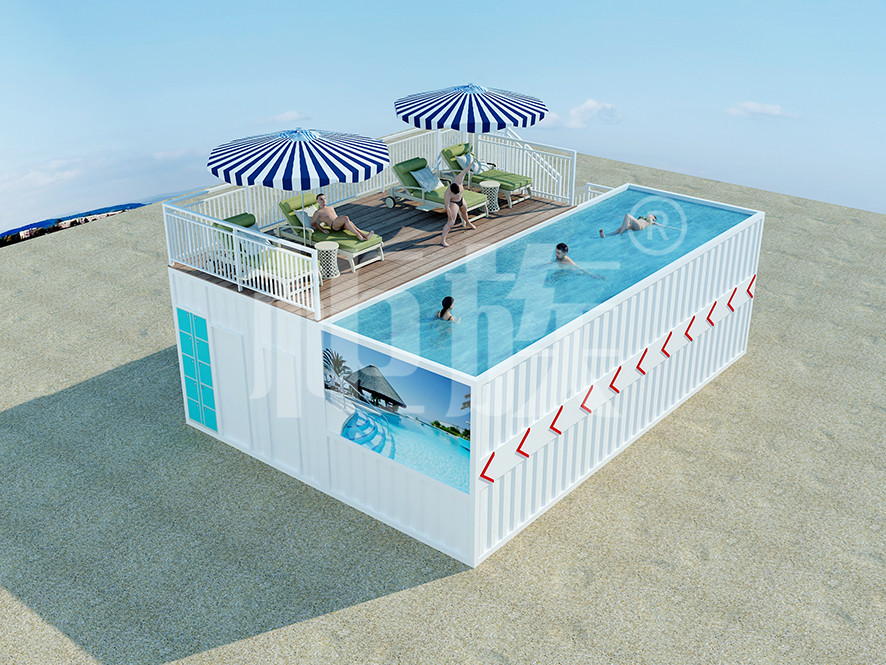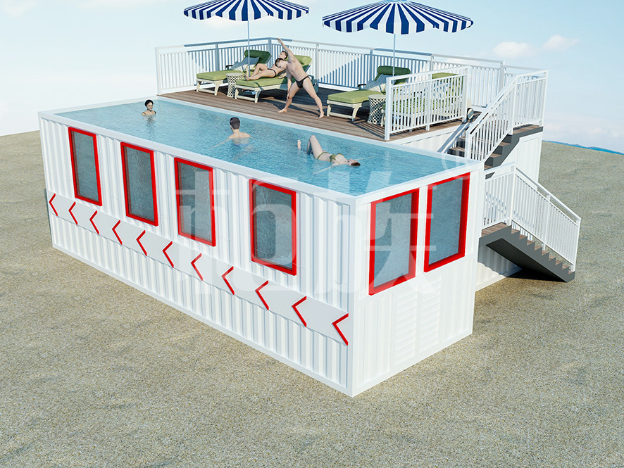 集裝箱泳池可以完全在工廠預(yù)制完成,占地小、造價(jià)低,適合庭院、海邊的度假地、以及其他公共游樂(lè)場(chǎng)所使用。