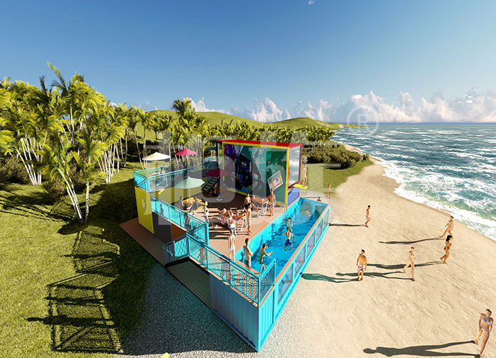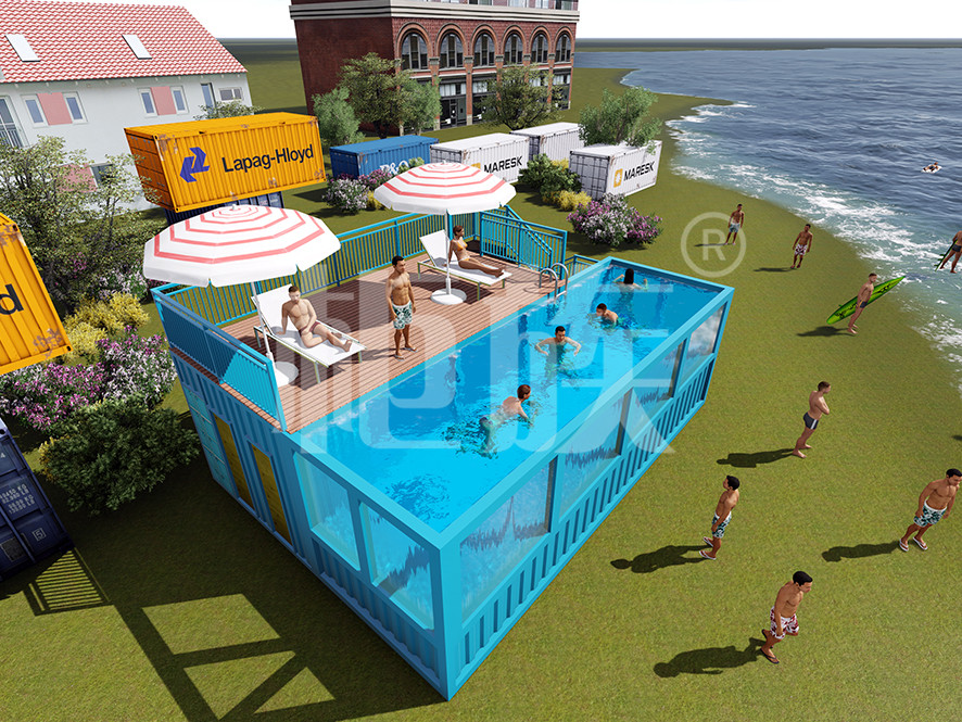 柜族出品的集裝箱游泳池占地面積少、造價(jià)低,適合庭院、度假區(qū)及游樂場所使用。